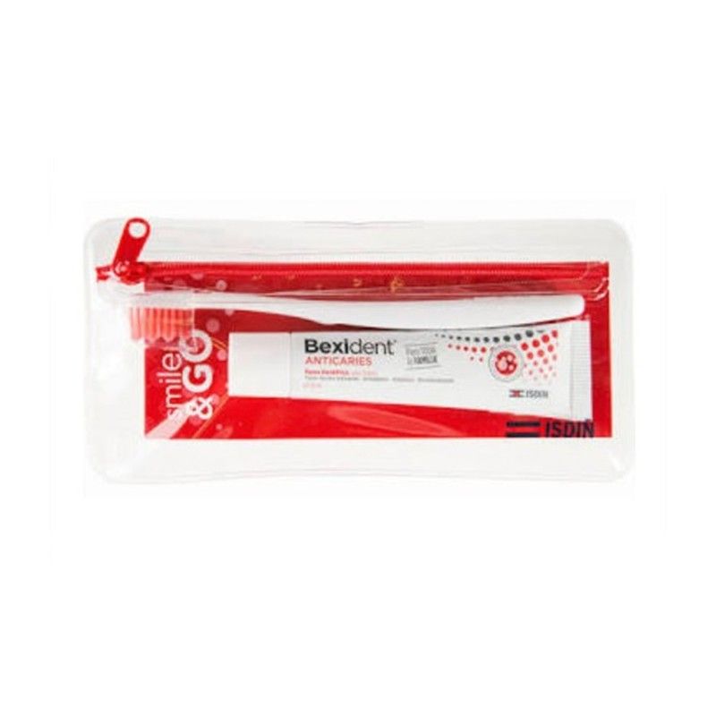 Bexident Kit Viaje Smile & Go Cepillo + Pasta Dental 25 ml es un kit de cuidado dental diseñado especialmente para los viajeros. El kit contiene un cepillo de dientes con cabezal de cerdas suaves y una pasta dental de 25 ml.
